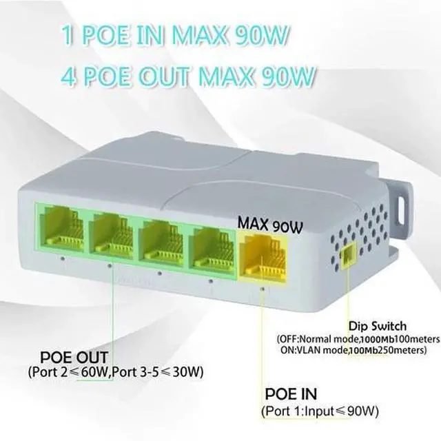 POE Port Output Power: Port 2 Output Maximum 60w, Port 3-5 Maximum 30w