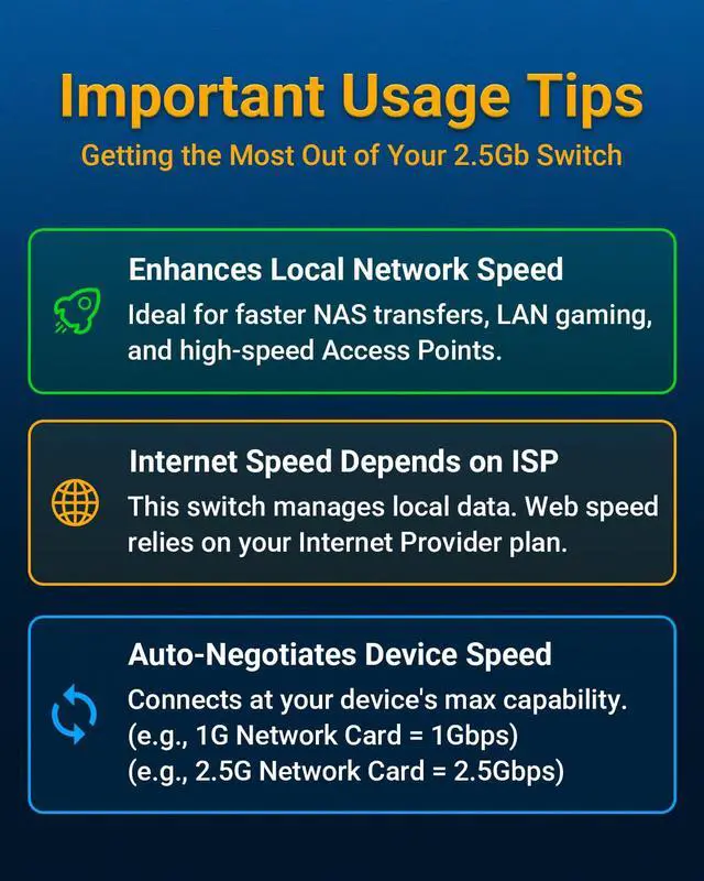 | Cat 6 or above for full 2.5G | Cat 6 or above for full 2.5G | Cat 6a or above for full 10G | Cat 6a or above for full 10G | Cat 6 or above for full 2.5G |