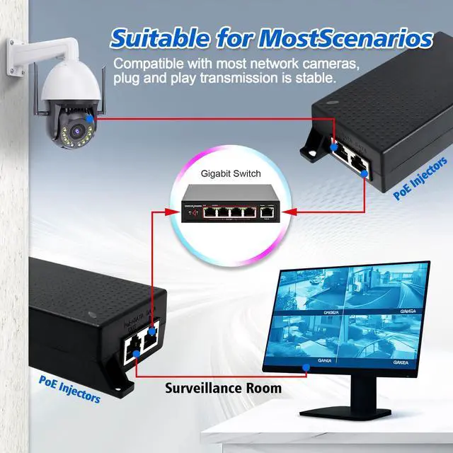 The PoE Injector PoE Mid-spans eliminate the need for external power supply and its associated AC/DC power cabling, providing a compact, affordable, safe and reliable power solution over existing Ethernet infrastructure.office network functional to use in any size office