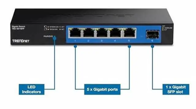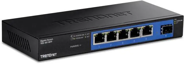 The 5-Port Gigabit Switch with SFP Slot, model TEG-S51SFP, provides high bandwidth performance, ease of use, and reliability. Boost office network efficiency and eliminate network congestion with gigabit speeds and a total switching capacity of 12Gbps with fullduplex mode. The gigabit SFP port provides capability for long distance network applications allowing for seamless integration into an existing SMB network.