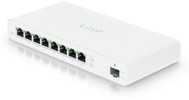 Ubiquiti UISP Router Gigabit PoE Router - White. Ideal for wireless ISP (WISP) deployments, the UISP Router is a fanless PoE router featuring (8) GbE RJ45 ports and (1) 1G SFP port for an additional fiber uplink option. The UISP Router provides a cost-effective routing solution for WIS