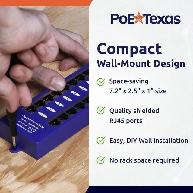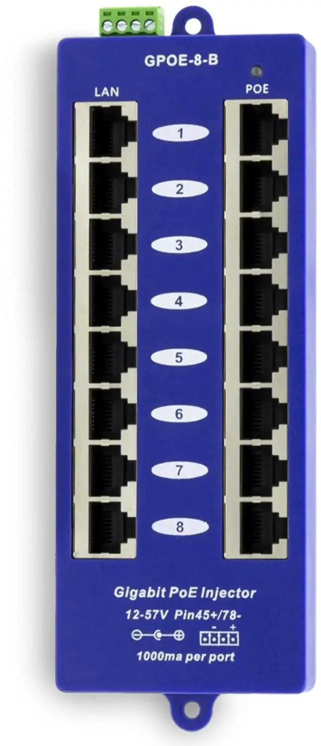 Remove clutter in your installations. Replace up to 8 individual power over ethernet injectors with this single POE module. This device provides power and data on one Ethernet cable using pins +4, 5 and -7, 8 (Mode B). All devices receive the same voltage and will share the available power. Check device specs for individual power consumption of each device. Use with a recommended 24 volt DC power supply for Ubiquiti and Mikrotik 10/100/1000 devices. (Please check manufacturer specs for compatibility)
