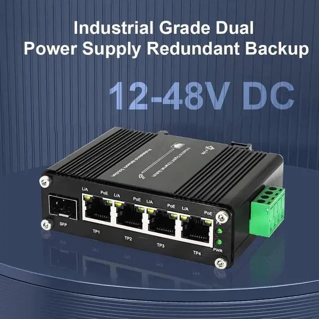 Mini Industrial 4 Port 10/100/1000Mbps Gigabit Ethernet POE + Switch with SFP Port Din Rail/Wall-Mount 4 Port 10/100/1000BASE-T RJ45 + 1 Port 100/1000FX (SFP) Support 12-48V DC