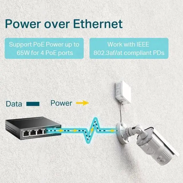 : 4× PoEplus(802.3at/af) ports providing up to 30W per port, total PoE budget 65W
