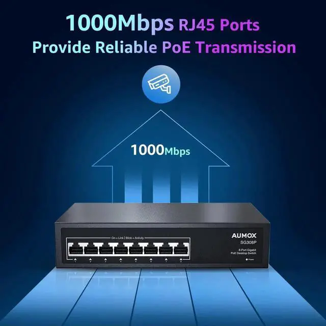 8 Gigabit PortAUMOX ethernet switch includes 8* 10/100/1000Mbps RJ45 ports. Excellent data transmission performance