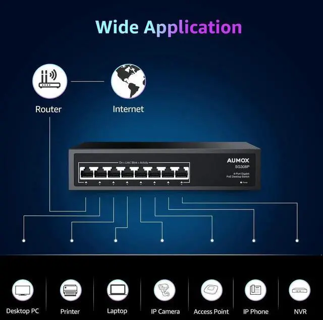 Wide ApplicationsAUMOX ethernet switch can connect PoE and non-POE devices, such as IP cameras