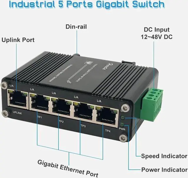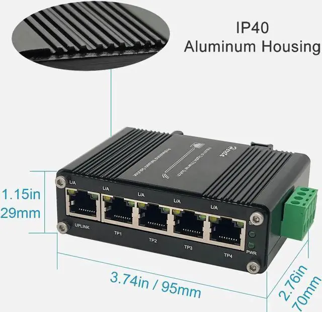 Hardened Industrial Gigabit Ethernet Switch 5-Port Mini Industrial Switch 10/100Mbps Half/Full Duplex and 1000Mbps Full Duplex