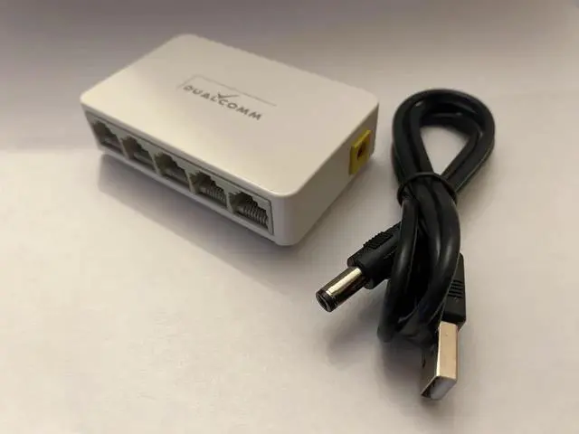 [Description] Dualcomm 5-port 10/100M Ethernet Switch (DCSW-1005U) is engineered with a efficient power circuitry capable of receiving power from a USB port and to operate reliably with up to five Ethernet connections at full speeds. It makes a heavy and bulky AC/DC power adapter uncessary! The small size and light weight makes this 5-port Ethernet switch a great choice for use at home, office or travel. [Package Content] 1. One unit of 5-port 10/100M Ethernet switch 2. One USB DC plug cable. 3. Quick installation guide