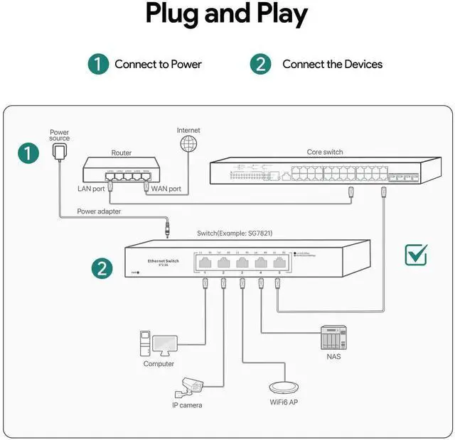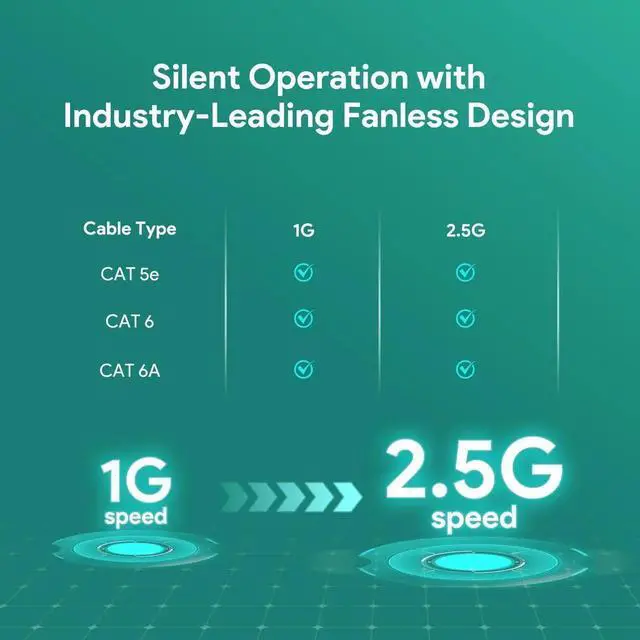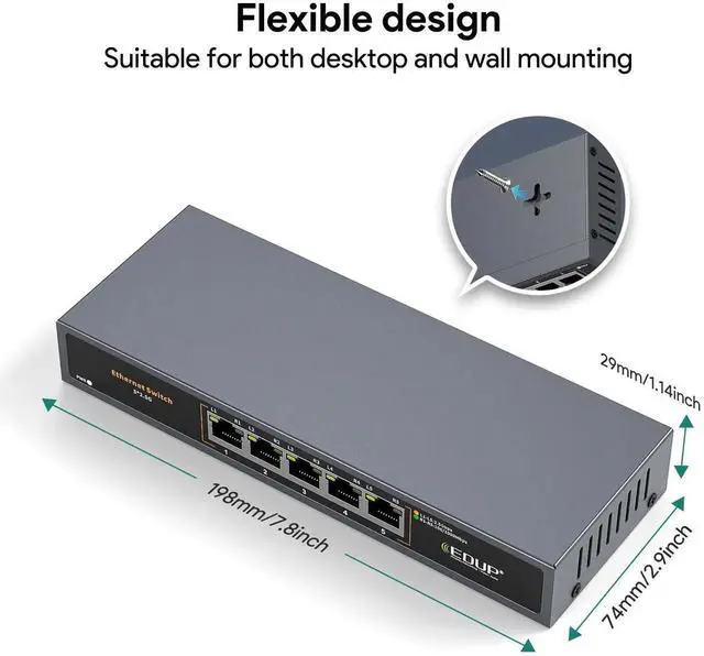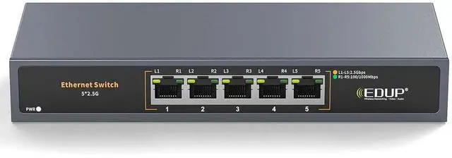 Ethernet Switch 2.5 Gigabit, 5 Ports Multi-Gigabit Ethernet Switch, Unmanaged, Fanless, Plug & Play, Reliable Network Splitter, Ideal for Gaming, NAS, PC, Silent, Desktop/ Wall Mount, Metal Design
