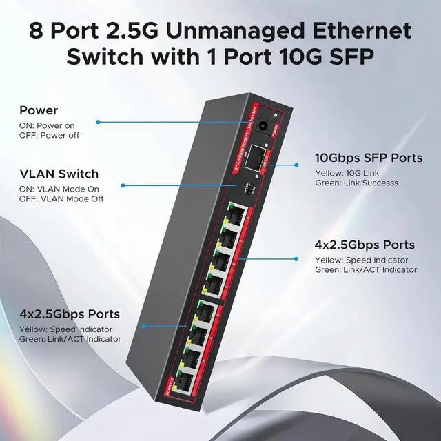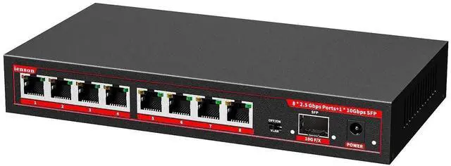ienRon 8 Port 2.5G Ethernet Switch with 1*10G SFP+ Slot, 9 Ports 2.5G b Network Swithes and 1-10Gb Multi Speed, 60Gbps Switching Capacity, One Key VLAN^^ Plug & Play ^^Fanless ^^Metal ^^Wall Mount