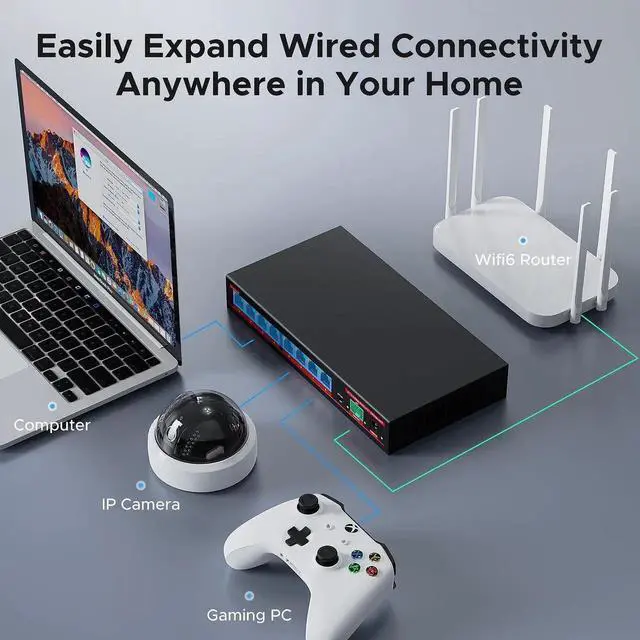 ienRon 8 Port 2.5G Ethernet Switch with 1*10G SFP+ Slot, 9 Ports 2.5G b Network Swithes and 1-10Gb Multi Speed, 60Gbps Switching Capacity, One Key VLAN^^ Plug & Play ^^Fanless ^^Metal ^^Wall Mount