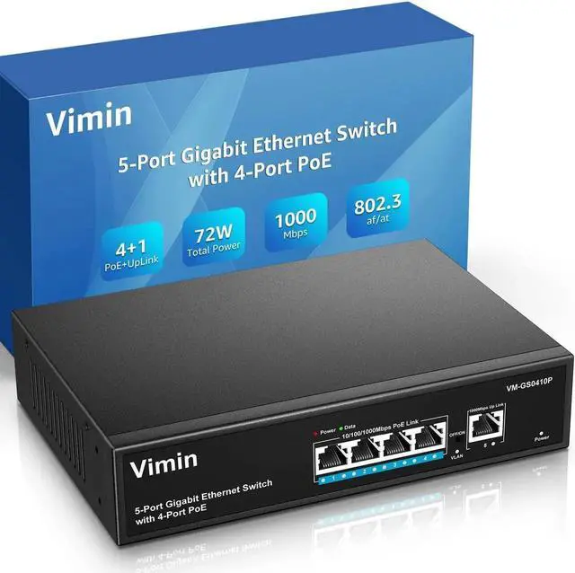 VIMIN 4 Port Gigabit PoE Switch with 1 Uplink Port & 16 Port Gigabit PoE Switch with 2X Gigabit Uplink Port , Support IEEE802.3af/at, One-Key VLAN, Plug and Play, Metal Case