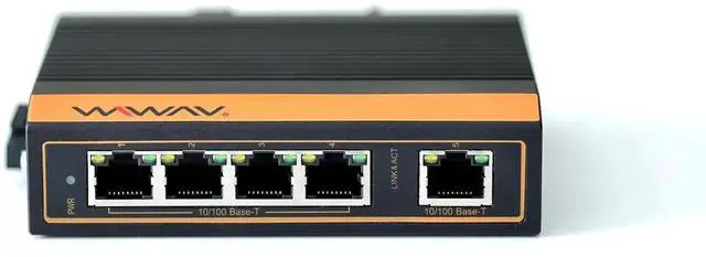 WIWAV WP1005-5FE-I 10/100Mbps Unmanaged 5-Port PoE Industrial Ethernet Switches with DIN Rail/Wall-Mount (UL Listed, IP40, -40~85)