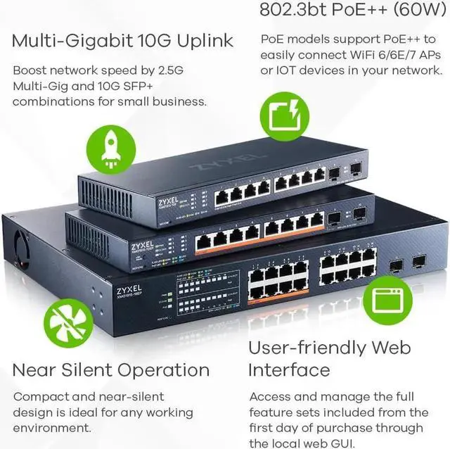 Zyxel 8-Port Multi-Gig 2.5G Switch ^^ Cloud/Smart Managed ^^ 2X 10G SFP+ ^^ Desktop or Wall Mount [XMG1915-10E]