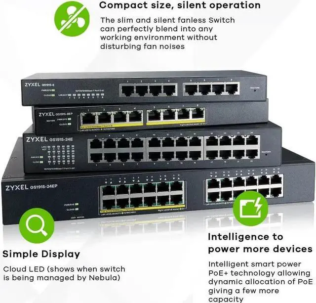 Zyxel 24-Port GbE Ethernet Switch ^^ Smart-Hybrid Mode ^^ Optional Nebula Cloud ^^ Rackmount ^^ Fanless [GS1915-24E]