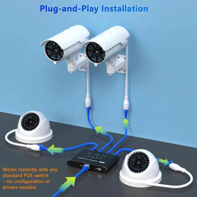 PoE Splitter 1 in 4 Out, Gigabit 4 Port PoE Switch, IEEE 802.3 at/af Compliant, 30W per Port Power Over Ethernet Hub for IP Cameras/APVoIP Phones (328 Ft), PoE+ Splitter for Cat5e/6/7/8 Cable
