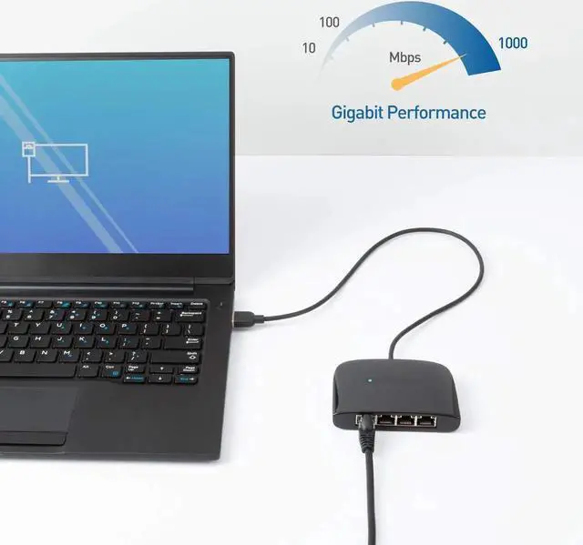 The Cable Matters USB 3.1 Ethernet switch is an indispensable networking accessory that combines a USB Ethernet adapter and a Gigabit Ethernet switch into one convenient adapter; Connect a laptop or Nintendo Switch game console which lacks a physical Ethernet port to a wired network with the Gigabit USB Ethernet adapter which also functions as a 4 port gigabit switch