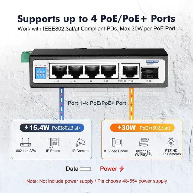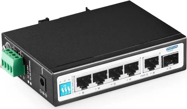 YuLinca 6 Port Mini Gigabit Industrial DIN-Rail PoE Switch, 4 x 100/1000Mbps PoE Ports, IEEE 802.3 af/at PoE+, 1 Gigabit Uplink, 1 Gigabit SFP, Unmanaged IP30 (-40~185°F) Hardened Industrial Switch