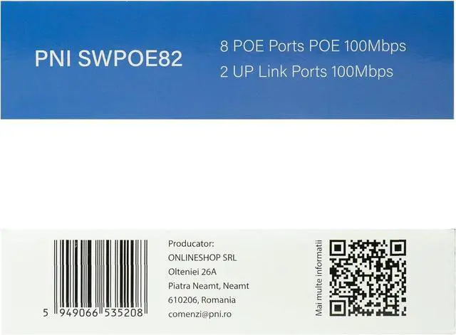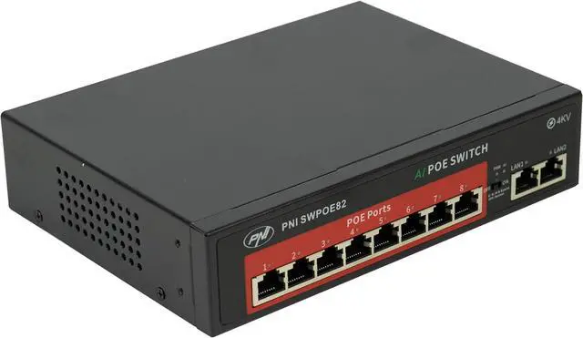 High Speed Connection SWPOE82 PNI Switch provides 8 PoE ports at 100Mbps to ensure seamless data transfer for your devices. It also has 2 Gigabit uplink ports for ultra-fast connections.