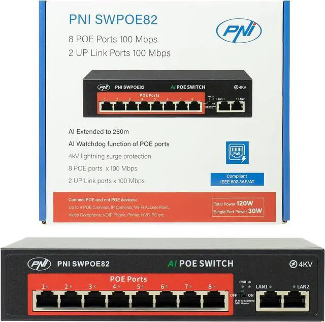 BUILT-IN SURGE PROTECTION: Worried about lightning? Don't worry! The PNI SWPOE82 features a 4KV surge protector that protects your network equipment and gives you peace of mind.