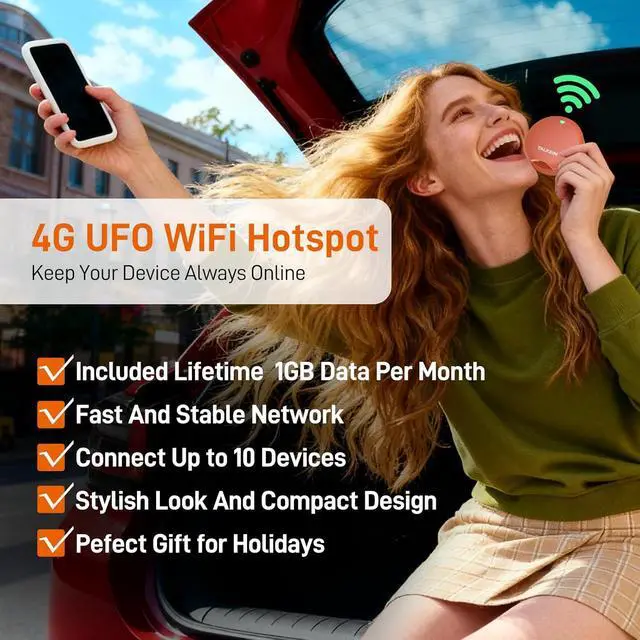 UFO Portable WiFi Hotspot - Your Essential Companion In the USA: Portable WiFi stays online, anywhere, anytime. From the open road to your living room, this Portable WiFi Mobile Hotspot for travel provides a reliable 4G LTE USA coverage. Power your remote work as you embrace RV life, or instantly safeguard your family's online world during a sudden internet outage. Never feel lost or disconnectedyour essential portable WiFi hotspot device companion is here. (Note: Please charge the UFO WiFi hotspot for the first time and restart if no internet)