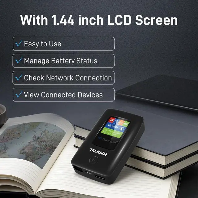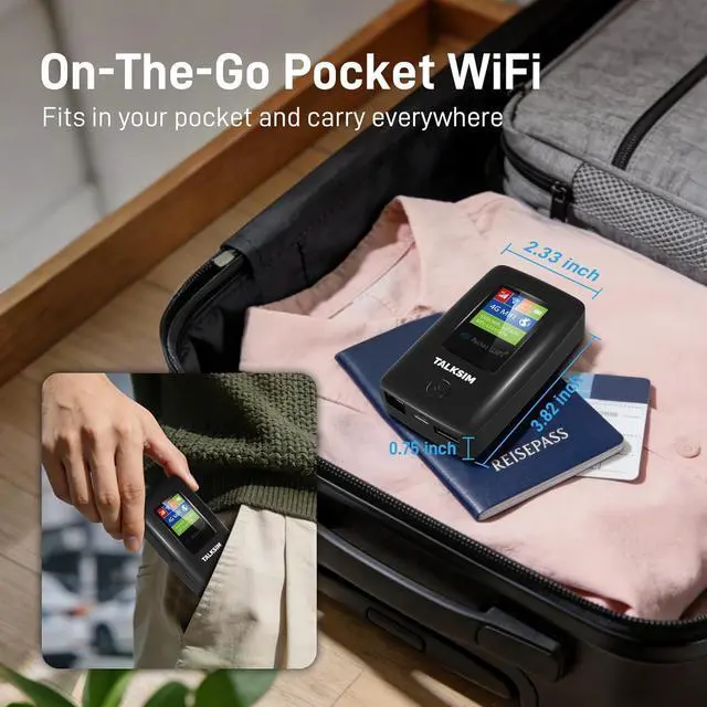 Compact Size &Portable WiFi Hotspot for TravelBoasting an ultra-lightweight and compact build, this portable WiFi hotspot fits effortlessly in your pocket, backpack, or hand pouchadding zero bulk to your luggage. Its the perfect reliable internet companion for international travel, business trips, family road trips, or even daily outings, weighing more likely a smart phone.