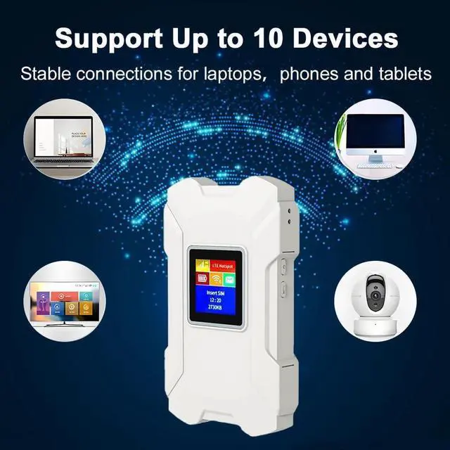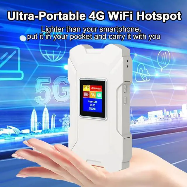 Ultra-Lightweight 4G WiFi Hotspot Device At just 151.4g (equivalent to 5.3oz), this portable WiFi hotspot device adopts a slim pocket-sized design engineered for daily commuting. The 4G LTE hotspot router maintains dual-band connectivity while effortlessly fitting in travel organizers, laptop sleeves, or even cardholder slots, with a scratch-resistant matte finish for durability.