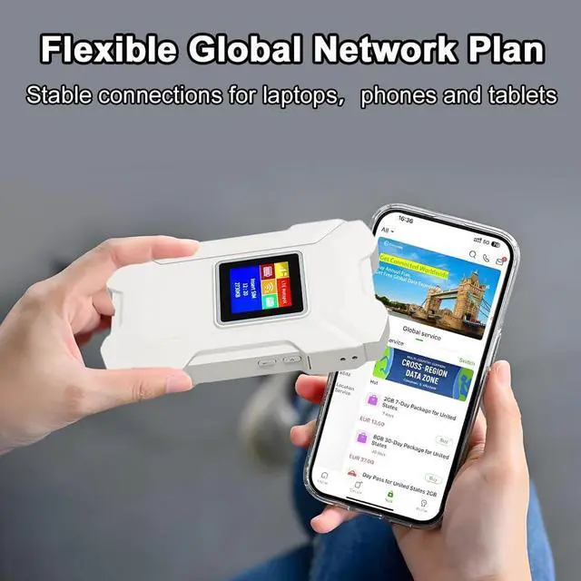 Dual Connectivity Portable WiFi Hotspot Router SIM Card + QR Code Recharge This portable hotspot router works with all major carriers via dual-band (2.4GHz/5GHz) connectivity, accepting any SIM card without carrier restrictions or contracts. As a compact travel WiFi solution, it enables instant QR code data top-ups in 10 seconds - no app or credit card required. Switch flexibly between cost-saving local SIM usage or temporary QR code data packages, making this wifi hotspot devices for travel.