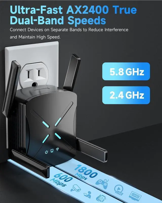 Say Goodbye To Dead Spots and Enjoy High-Speed Network Throughout The House: 2026 dual band wifi 6 extender signal booster uses the latest wireless technology to provide ultra fast transmission speed, stable connection, and ultra wide coverage, Long range up to 12,000 sq ft, Enjoy seamless streaming from the garage to the home office