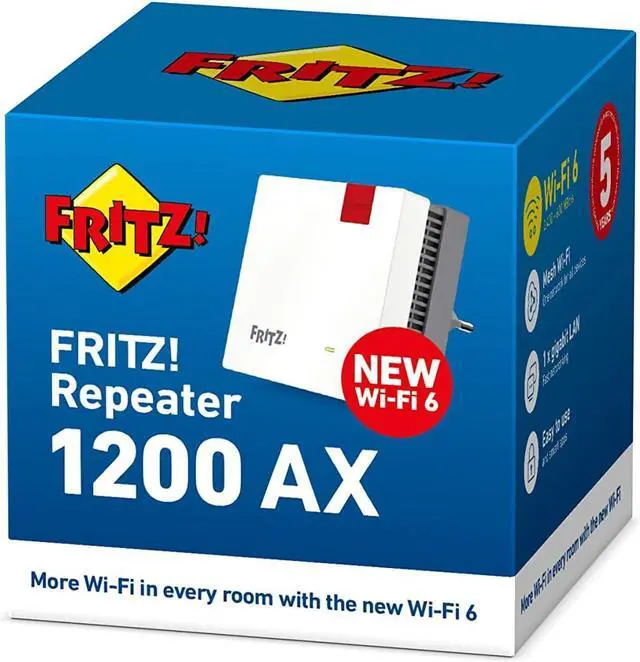 The AVM FRITZ!Repeater 1200 AX Edition International quickly and easily increases the range of any WLAN. Innovative Wi-Fi 6 ensures higher data rates and better distribution of available bandwidth to all connected devices. At the same time, the FRITZ!Repeater 1200 AX ensures perfect wireless coverage up to the last corner of the house and apartment.