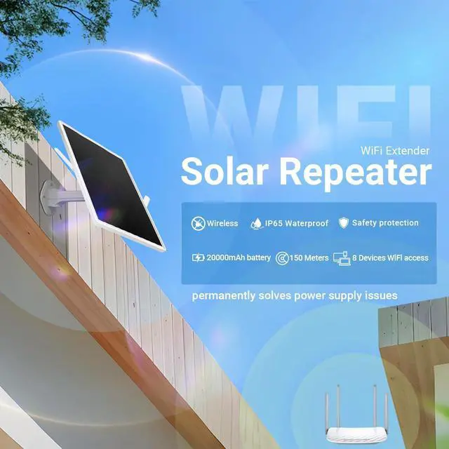 The conversion efficiency is 24%High-Quality Solar Panel Powered by a 15W high-efficiency solar panel with a conversion efficiency of 24%, this long range wifi extender harnesses the sun's energy to keep you connected. The solar panel, protected by durable tempered glass, ensures longevity and resistance to outdoor elements.