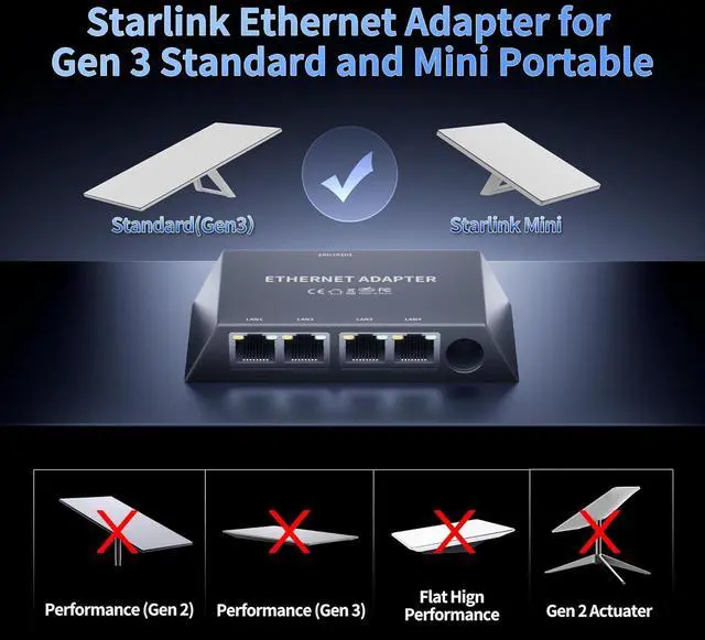 Compatibility: This Starlink Ethernet Adapter Gen 3 is specifically designed for wired network for Starlink Gen 3 Standard and Starlink Mini portable dish.