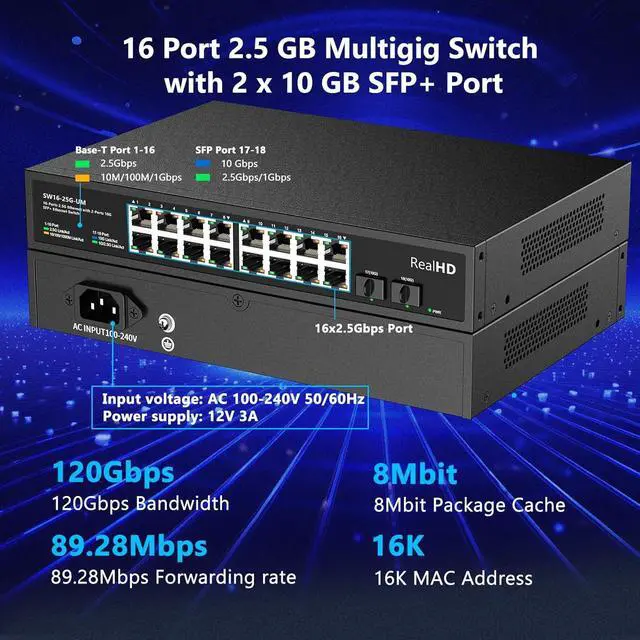 Real HD 2.5 gigabit switch features 8 x 2.5G RJ-45 Ports and 2 x 10G SFP+ Port