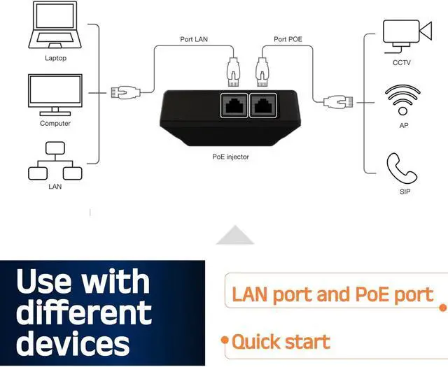These PoE injectors are available in Active, Passive, and Combo types, with the Combo model supporting both Active and Passive PoE functionalities. They cover a voltage range from 24 to 57 volts and deliver 25 to 50 watts, making them suitable for a variety of Ethernet devices. Ideal for powering network components like WiFi access points, routers, and antennas, the Combo injector offers a flexible solution for diverse network setups.