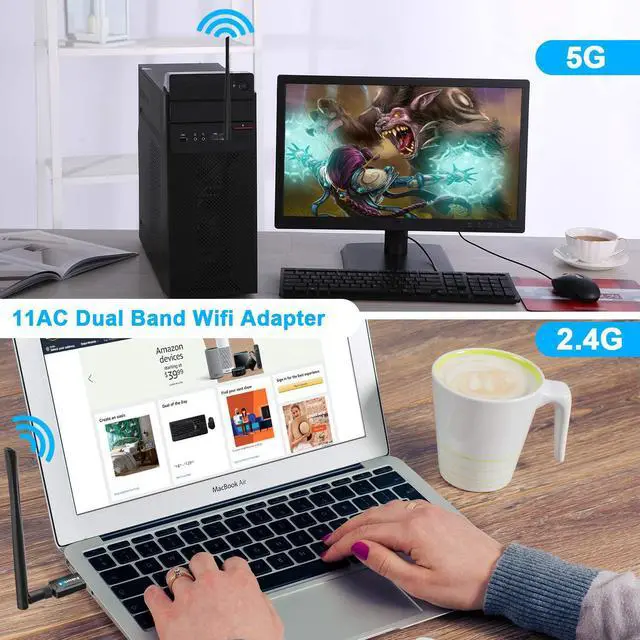 Up to 867Mbps Wi-Fi speeds on 5GHz band or 300Mbps on 2.4GHz band,Performance to reduce freezing and lags when streaming and gaming.Ultra-fast AC1200 wireless adapter speed with 802.11ac.