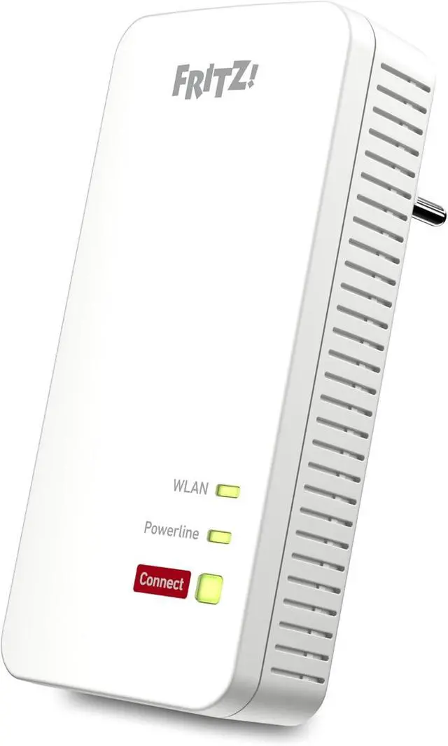 Powerline with Gigabit speed and Wi-Fi 6 FRITZ! Powerline 1240 AX supports Wi-Fi 6 in the 2.4 GHz spectrum with up to 600 Mbps. With Powerline, data is distributed over the mains at up to 1,200 Mbps. So PC and TV get a fast data line via the power line and smartphone and co surf reliably in the WLAN. WLAN mesh with FRITZ! To ensure that videos, music and photos in the home network reach seamlessly to the last corner of any room, FRITZ!Powerline 1240 AX relies on WLAN mesh. The distributed FRITZ! devices work in a single network, exchange with each other and optimise the performance of all WLAN devices. With mesh, you can easily enjoy top speed when surfing, video or gaming. Stunning HD TV and your favourite music are waiting for you not the other way around. 60 to 80 percent higher data rate via the socket The 2x2 MIMO function ensures the speed boost via the power cable, in which two transmitters and receivers exchange data simultaneously via the three wires of the circuit. This is ideal for particularly data-intensive applications, such as HD streaming or online gaming. Turn any socket into a high-speed network port. Over walls FRITZ!Powerline impresses with the highest speed and high range over the power line: don't let yourself be stopped and connect your network devices even across multiple walls, without annoying cables or holes in the walls. Why only one when you can have everything? Get the range via the power line even to the garden shed and enjoy fast Wi-Fi even in remote areas. In addition, powerful Gigabit LAN ensures that PC, Smart TV, game console etc. are optimally connected to the data highway. Plug in, press a button, have fun Look forward to the set-up that is one thing above all: simple. Plug the securely encrypted devices into the socket and with a simple push of a button, FRITZ!Powerline is ready to use. Just as quickly expand an existing powerline network or add Wi-Fi.