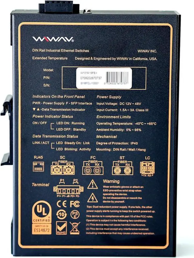 WIWAV industrial ethernet switch provides top performance in a wider range of operating temperatures than conventional network switches, making it ideal for factories and warehouses.