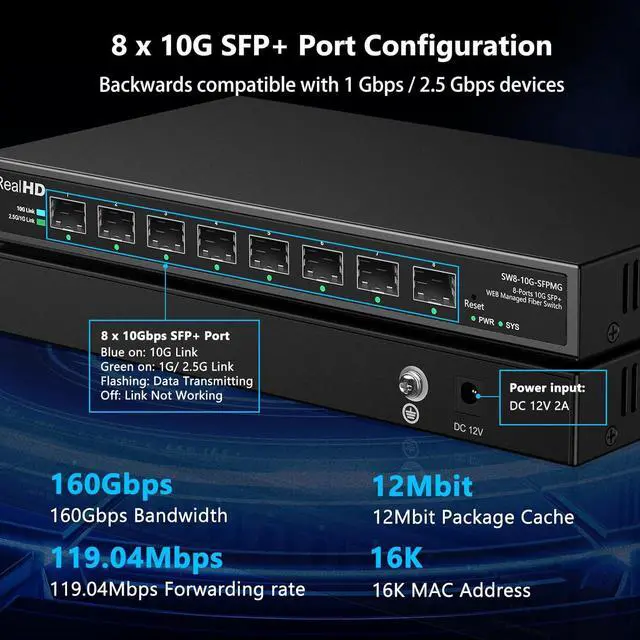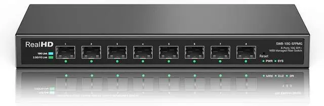 Real HD 10 gigabit switch features 8 x 10Gb SFP+ Ports