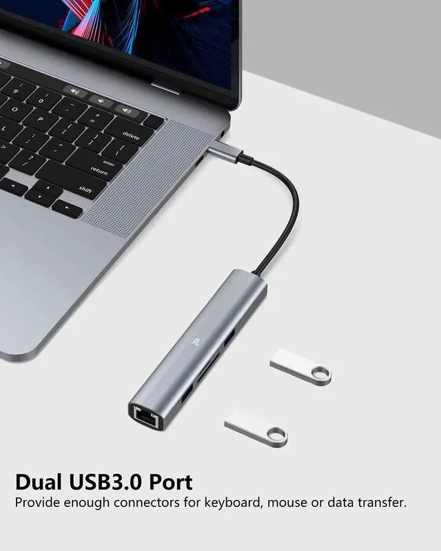 Instant expand your laptop capabilities with this Purgo multi-port type-c hub. It offer 2 USB 3.0 ports , SD & Micro SD card reader and a type c charging port. Plug-n-Play, Hot Swap, Aluminum Alloy Construction.