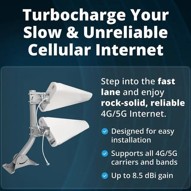 Say goodbye to laggy Zoom calls, Netflix buffering, and High Ping gaming! If youre looking for faster data speeds with your LTE router, you've found the right product! The waveform MIMO Log Periodic Antenna kit uses 2 cross polarized LPDA yagi antennas to maximize the reception of your LTE modem. Our Kit gives you everything you need to attach these antennas to your LTE Modem with our 3 pack of adapters. Simply use the adapters to connect to your hotspot, connect the adapters to the coax cable and mount your antenna somewhere outside, ideally lower than the highest peak of the roof to enjoy some faster data rates! Bands supported :AT&T: B2, B4, B5, B12, B17, B29, B30, B66 | Verizon: B2, B4, B5, B13, B66 | T-Mobile: B2, B4, B5, B12, B66, B71 | Sprint: B25 B26, B41| Band 2 (1900 MHz) | Band 4 (1700/2100 MHz) | Band 5 (850 MHz) | Band 12 (700 MHz) | Band 13 (700 MHz) | Band 14 (700 MHz) | Band 17 (700 MHz) | Band 25 (1900 MHz) | Band 26 (850 MHz) | Band 30 (2100 MHz) | Band 66 (2100 MHz) | Band 71 (600 MHz) | All supported 5G Bands: n1, n2, n3, n5, n7, n8, n12, n14, n18, n20, n25, n26, n28, n29, n30 n34, n38, n39, n40, n41, n65, n66, n70, n71, n80, n81, n82, n83, n84, n86, n89, n90, n95