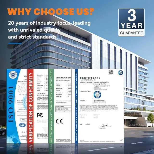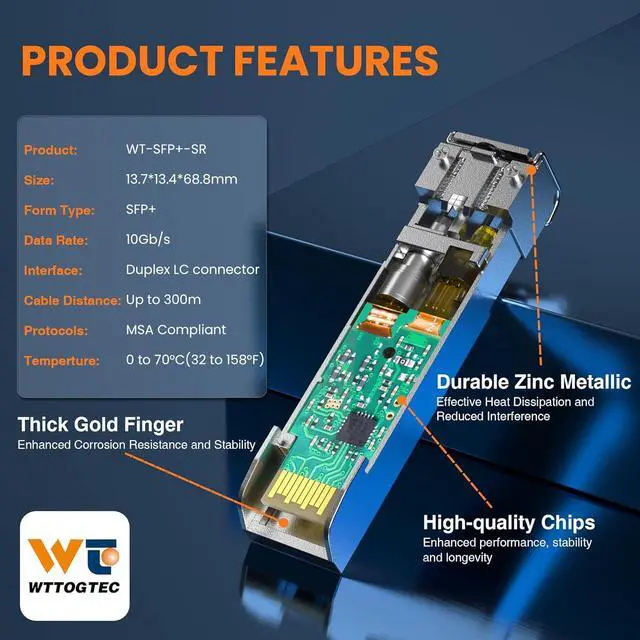 Durable & Energy Efficient: Made with high-quality alloy for a strong, wear-resistant shell. Features low power consumption (less than 1.05 watts) and low EMI emission design. Compliant with SFP MSA and IEEE 802.3ae standards, with an operating temperature range of 0°C to 70°C.