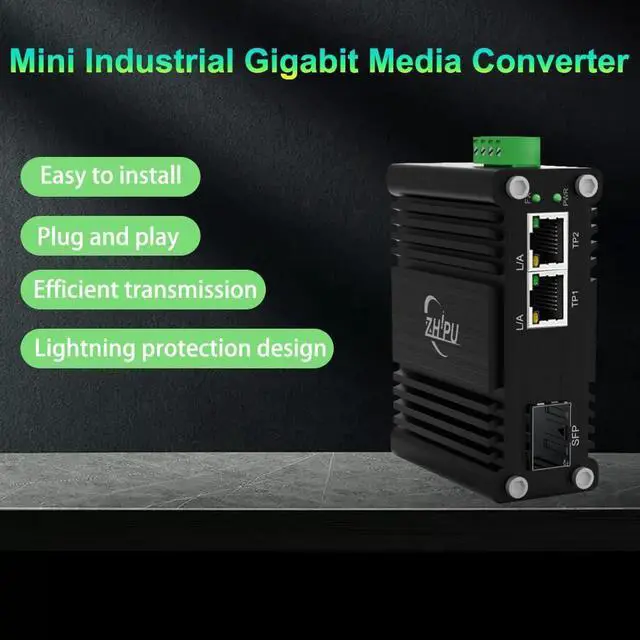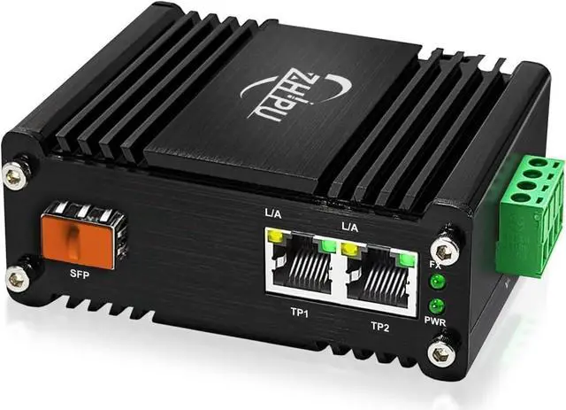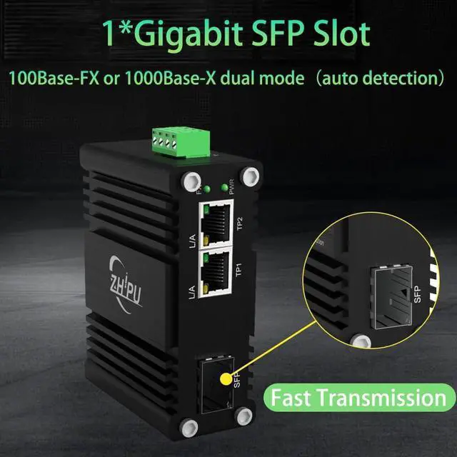 ZP-IMC1200GP-SFP is a DIN rail type media converter that supports external SFP Modules and meets EN55022 standard. The Ethernet port support high power PoE (Power Sourcing Equipment) which complies with IEEE802.3at standard.