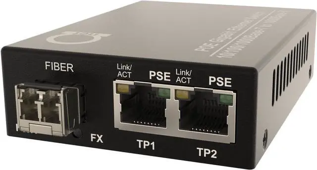 [ 2 in 1 PoE Device] Fiber Media Converter and 2 RJ-45 port PoE/PoE+ injector All in One Device, supporting IEEE 802.3af, IEEE802.3at and fiber distance up to 0.34 miles (550 m), over MultiMode Fiber Optic Cable - using 850nm wavelength.