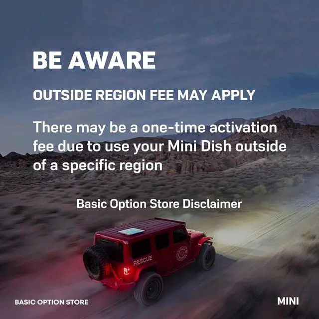 BE AWARE: OUTSIDES REGION FEE MAY APPLY: There may be a one-time activation fee of $300 due to use of your mini dish outside of a specific area.
