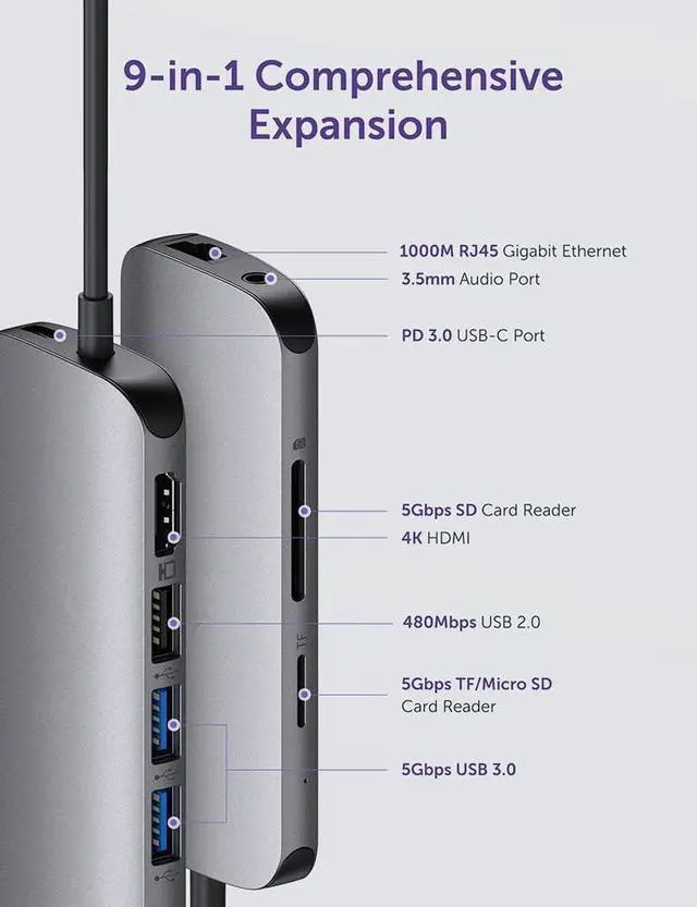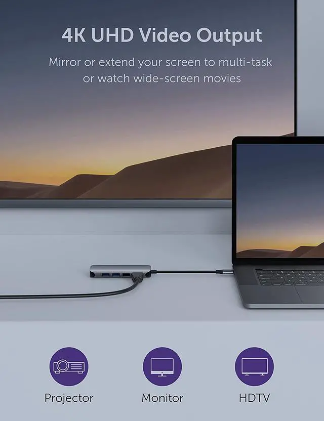 1.Please connect your wireless mouse with USB 2.0 for a better performance. 2.For the max 1000Mbps network speed, a 1000Mbps LAN port router, a CAT5e cable and a high speed Ethernet driver is required. 3.To achieve optimal 3840 x 2160 resolution, use with a 4K screen display and HDMI 2.0 cables. 4.When the power adapter is not connected, your laptop battery will supply power to the connected devices which will run out soon if these devices require a great amount of power. 5.It is recommended to use the USB ports only for data transfer instead of charging your tablets and phones. 6.This USB C does not work with USB A inputs even if a C to A adapter is used since standard protocol for USB C devices deviate. Whats in the Box: 1 x USB C Hub 1 x User Guide