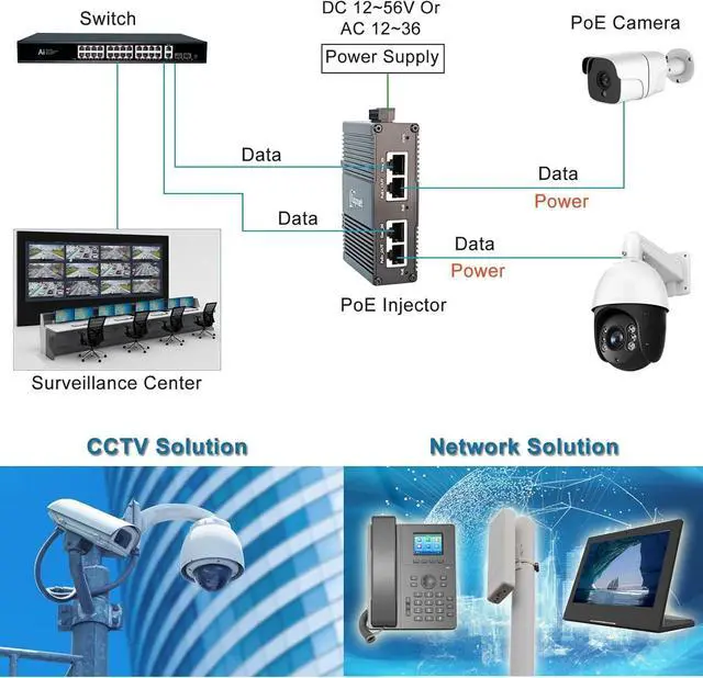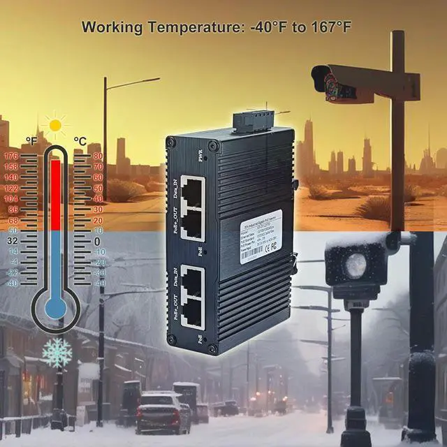 [Industrial Grade Quality] The Industrial 30W PoE adapter use industrial grade components and aluminum housing, it can work at wide range temperature -40°C to 75°C (-40°F to 167°F). You can use it in outdoor harsh environment.