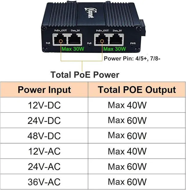 [802.3af/at PoE Output] The PoE+ inejctor with 2 PoE output Ports, supports IEEE802.3af PoE (15.4W) and IEEE802.3at PoE+(30W). It can connect 2 device at the same time.
