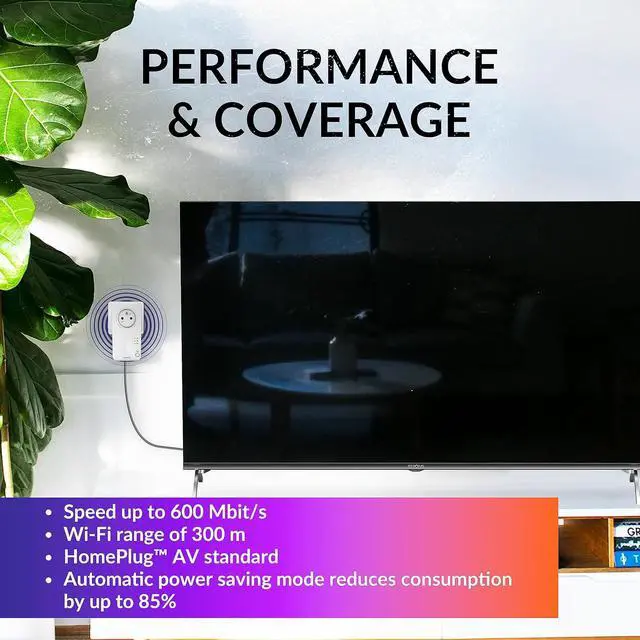 Wide band access: By using the socket in any room, this set offers a data transfer rate of up to 600 Mbps, ensuring fast access to the Internet up to 300 meters away from your router or modem