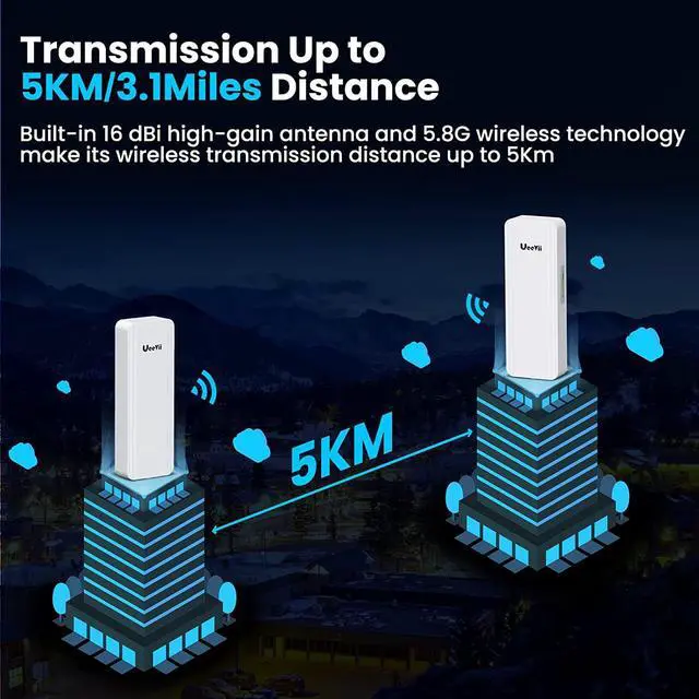 POE Power Supply: Support for 24V POE power supply, installation, and deployment of the UeeVii wireless bridge is a breeze, simplifying construction processes, and ensuring smooth wireless video guaranteeing high-speed and uninterrupted surveillance