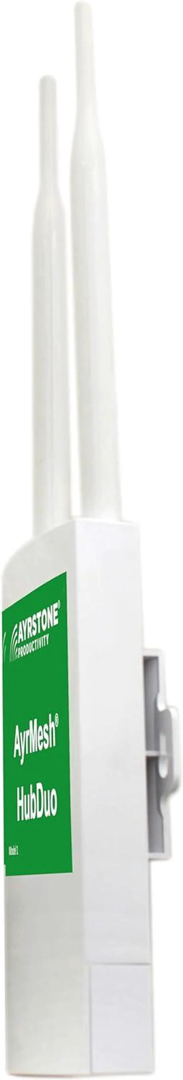 Range: UP TO 400 yards to a smartphone, 1000 yards to a laptop, 2 miles to another AyrMesh Hub